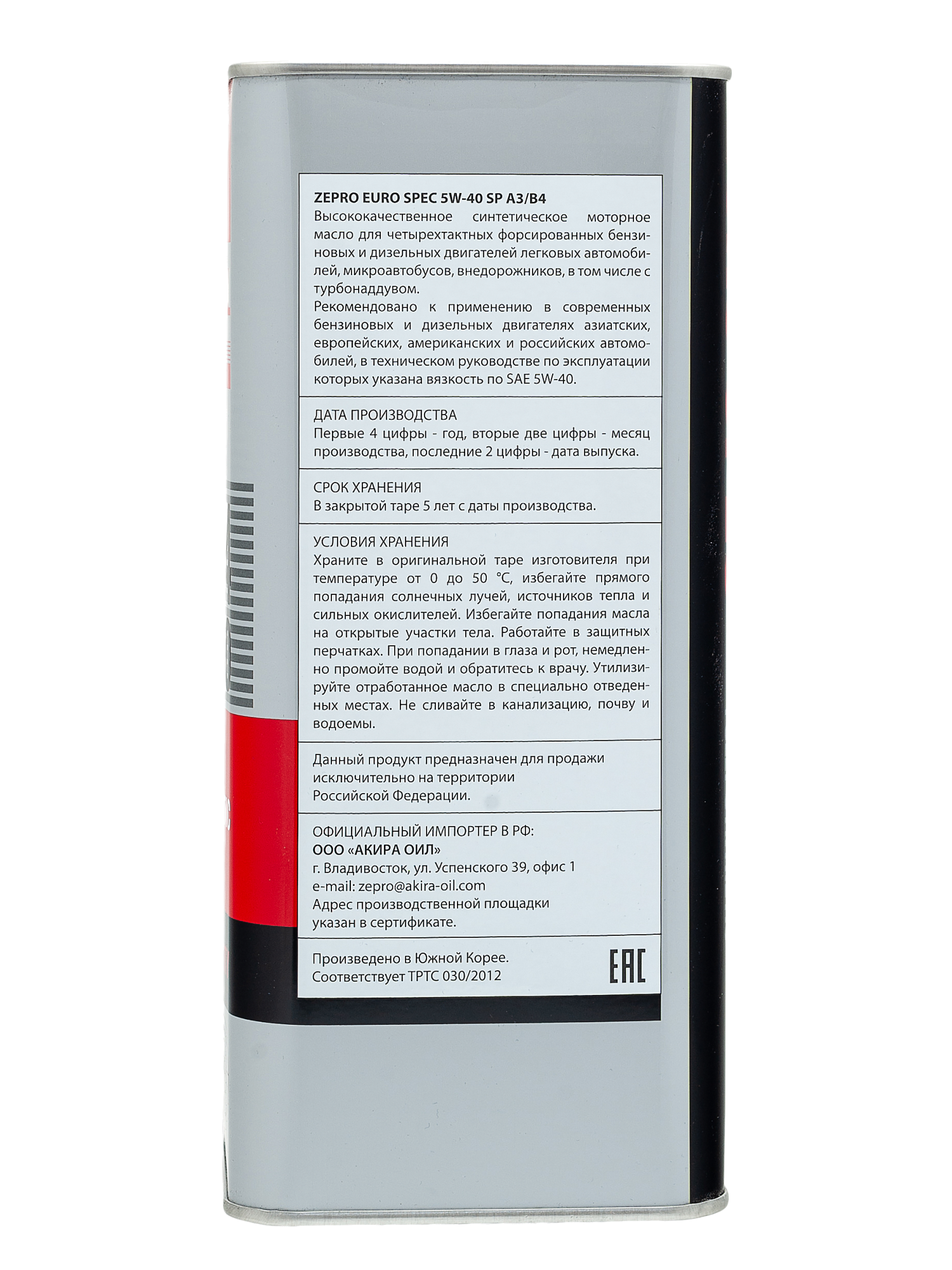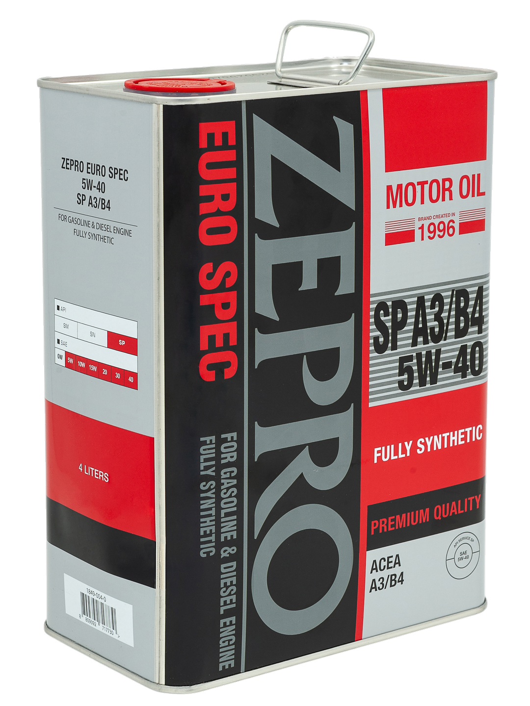 Высококачественное моторное масло высочайших эксплуатационных характеристик для четырехтактных форсированных бензиновых и дизельных двигателей легковых автомобилей, микроавтобусов, внедорожников, в том числе с турбонаддувом. Данный продукт произведен на 100% синтетическом базовом масле. Вобрав в себя преимущества полностью синтетического масла с улучшенным современным пакетом присадок, масло ZEPRO Euro Spec обеспечивает максимальную защиту двигателя в условиях длительных высоких нагрузок.