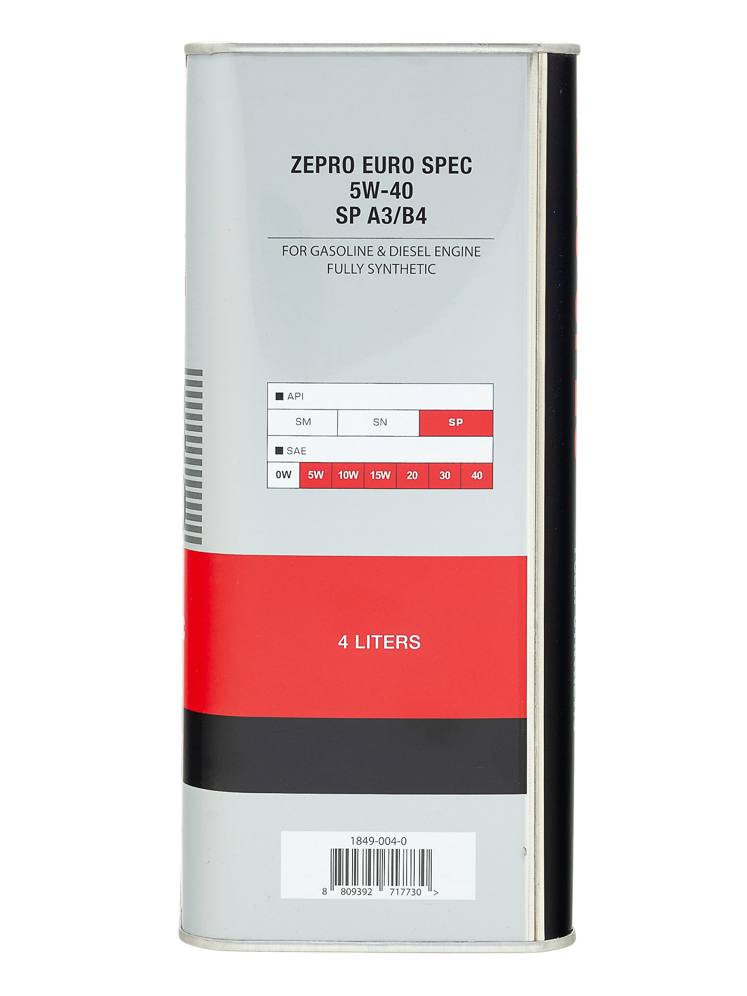 Высококачественное моторное масло высочайших эксплуатационных характеристик для четырехтактных форсированных бензиновых и дизельных двигателей легковых автомобилей, микроавтобусов, внедорожников, в том числе с турбонаддувом. Данный продукт произведен на 100% синтетическом базовом масле. Вобрав в себя преимущества полностью синтетического масла с улучшенным современным пакетом присадок, масло ZEPRO Euro Spec обеспечивает максимальную защиту двигателя в условиях длительных высоких нагрузок.